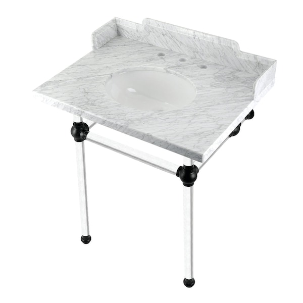 30 Carrara Marble Console Sink with Acrylic Legs, Marble WhiteMatte Black