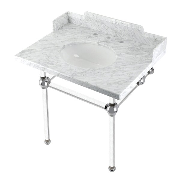 30 Carrara Marble Console Sink with Acrylic Legs, Marble WhitePolished Chrome