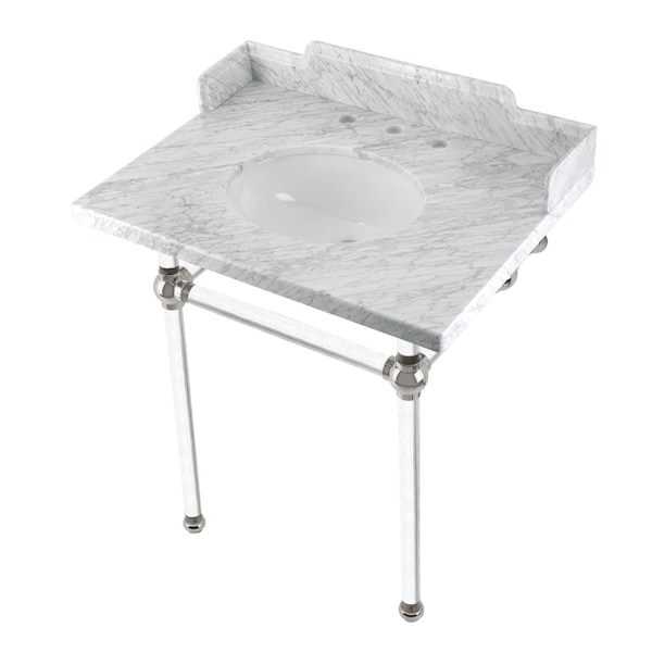 30 Carrara Marble Console Sink with Acrylic Legs, Marble WhitePolished Nickel