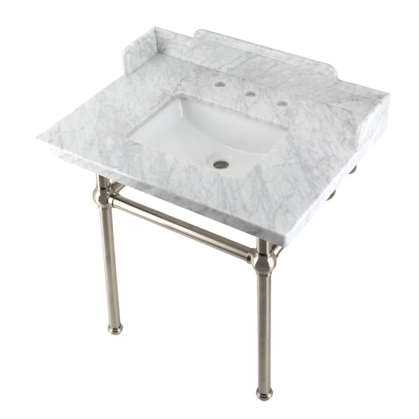30 Carrara Marble Console Sink with Brass Legs, Marble WhiteBrushed Nickel