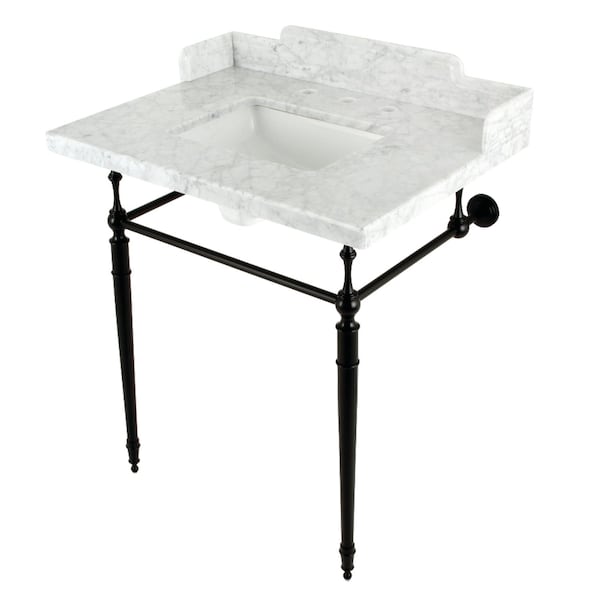 30 Carrara Marble Console Sink with Brass Legs, Marble WhiteMatte Black