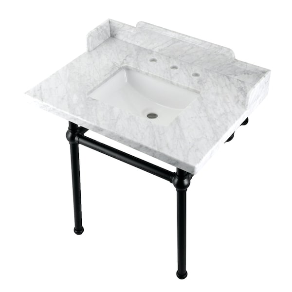 30 Carrara Marble Console Sink with Brass Legs, Marble WhiteMatte Black