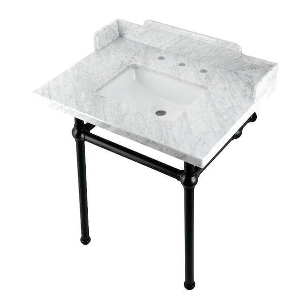 30 Carrara Marble Console Sink with Brass Legs, Marble WhiteMatte Black