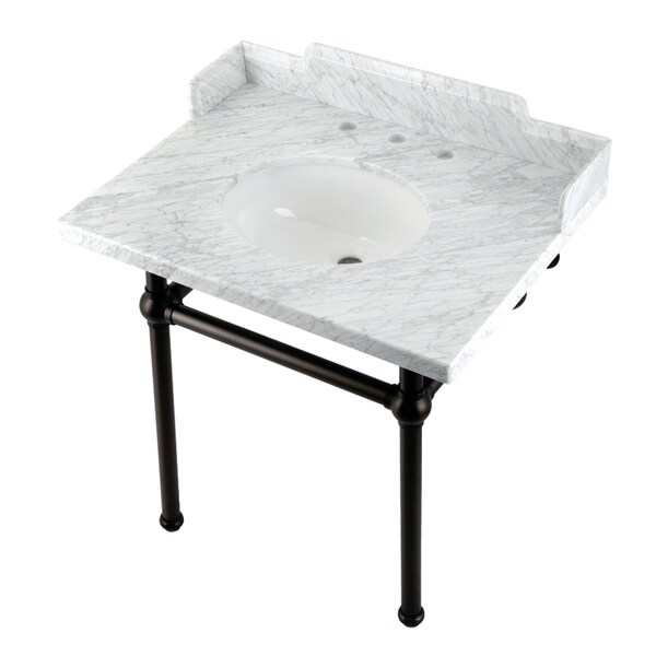 30 Carrara Marble Console Sink with Brass Legs, Marble WhiteOil Rubbed Bronze