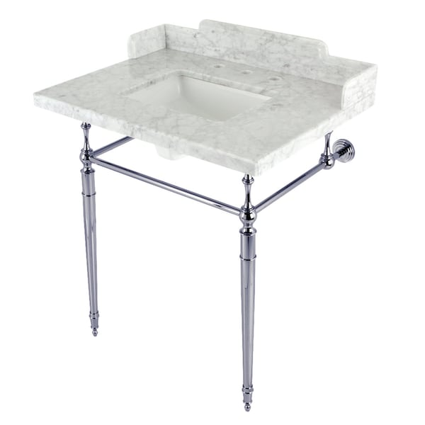 30 Carrara Marble Console Sink with Brass Legs, Marble WhitePolished Chrome