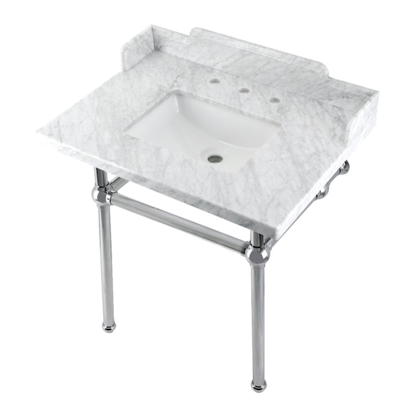 30 Carrara Marble Console Sink with Brass Legs, Marble WhitePolished Chrome
