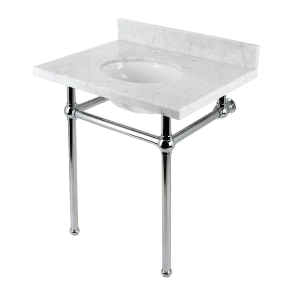 30 Console Sink with Brass Legs 8Inch, 3 Hole, Marble WhitePolished Chrome