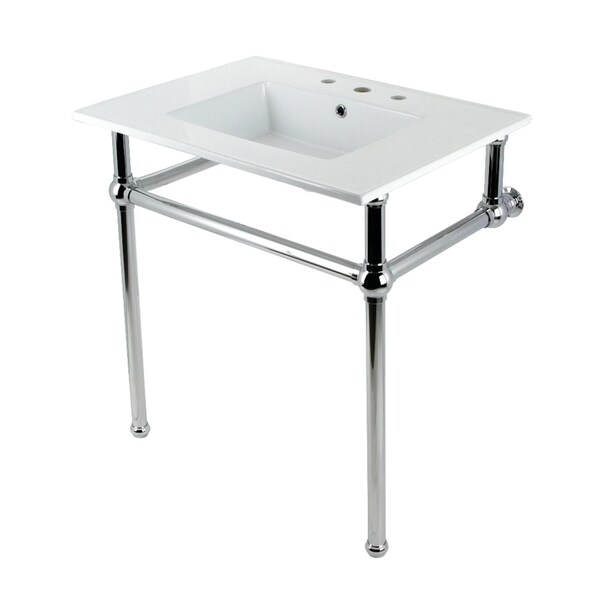 31 Console Sink with Brass Legs 8Inch, 3 Hole, WhitePolished Chrome