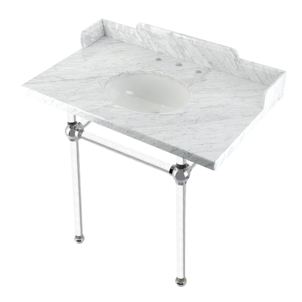 36 Carrara Marble Console Sink with Acrylic Legs, Marble WhitePolished Chrome