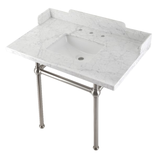 36 Carrara Marble Console Sink with Brass Legs, Marble WhiteBrushed Nickel