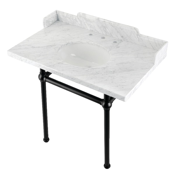 36 Carrara Marble Console Sink with Brass Legs, Marble WhiteMatte Black