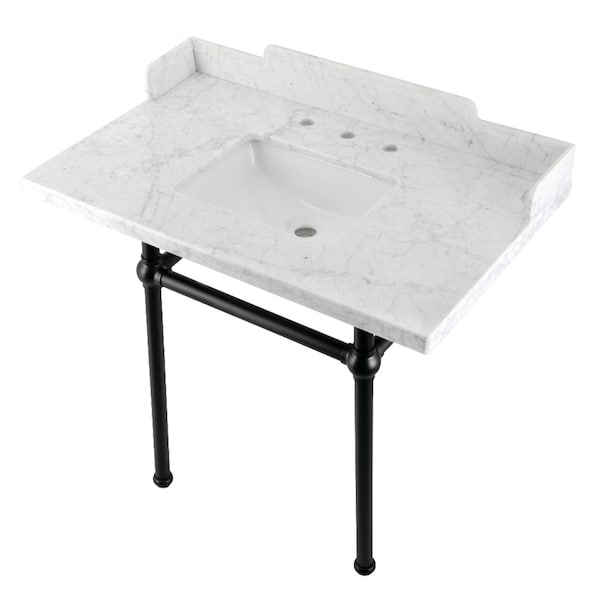 36 Carrara Marble Console Sink with Brass Legs, Marble WhiteMatte Black