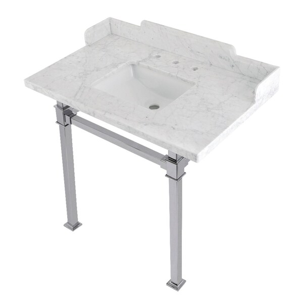36 Carrara Marble Console Sink with Stainless Steel Legs, Marble WhitePolished Chrome