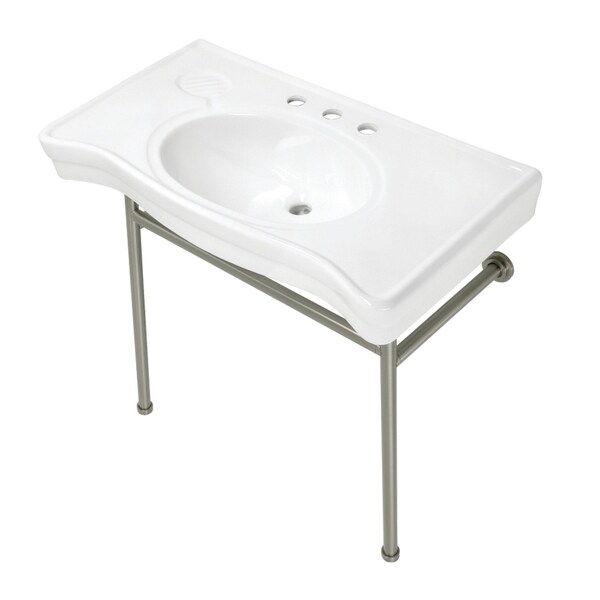 36 Ceramic Console Sink with Stainless Steel Legs, WhiteBrushed Nickel