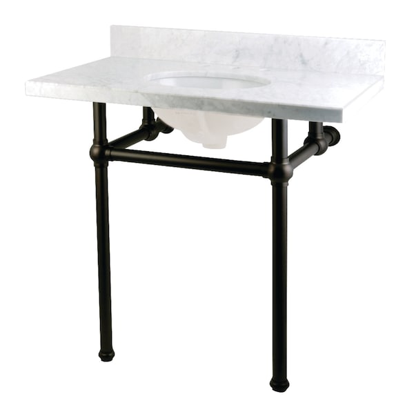 With a beautiful carrara marble counter top, this console sink set is a long lasting, durable, and elegant addition to your bathroom. A fabulous alternative where space is limited or tight, these sinks are also known for their wheel-chair accessibility, making them friendly for the whole family. The pristine, stain-resistant surface and glistening finish make for a very sturdy fixture that is easily maintained. Also for your convenience, anti-slip rubber pads are included with the brass legs to ensure steadiness. Water supply kit, drain assembly, and the faucet are sold separately.