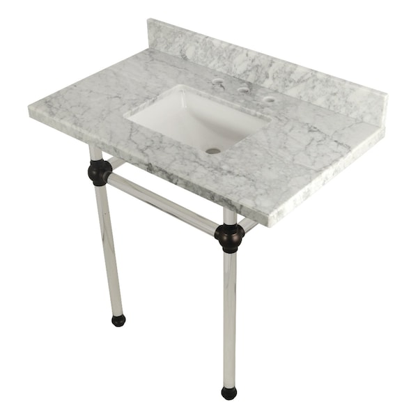 With a beautiful carrara marble counter top, this console sink set is a long lasting, durable, and elegant addition to your bathroom. A fabulous alternative where space is limited or tight, these sinks are also known for their wheel-chair accessibility, making them friendly for the whole family. The pristine, stain-resistant surface and glistening finish make for a very sturdy fixture that is easily maintained. Also for your convenience, anti-slip rubber pads are included with the acrylic legs to ensure steadiness. Water supply kit, drain assembly, and the faucet are sold separately.