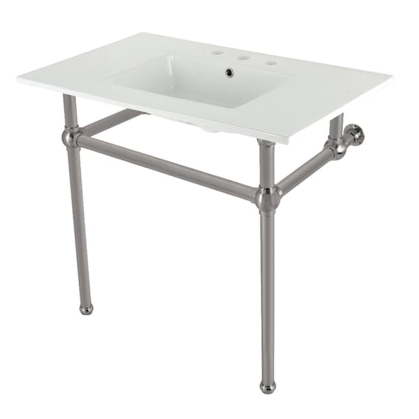 37 Console Sink with Brass Legs 8Inch, 3 Hole, WhiteBrushed Nickel