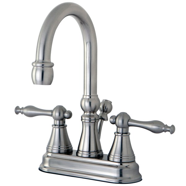 This faucet exemplifies sophisticated grace and beauty while offering top-of-the-line endurance and dependability. The Naples 4-inch centerset bathroom faucet with brass pop-up and its sturdy brass construction and premium brushed nickel finish are guaranteed to glamorize your home. Leave your guests with the impression of unparalleled elegance and posh with the exquisite details that is prominent throughout this fixture. A matching finish drain is also included.