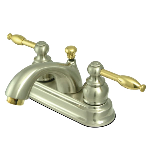 The exquisite design of this faucet tastefully flatters the elegant architecture of traditional homes with its fine detailing. Centerset bathroom faucets are ideal for smaller bathrooms and feature an easy 3-hole installation. The Knight 4-inch centerset bathroom faucet and its featured sturdy brass construction and premium brushed nickel/polished brass finish are guaranteed to glamorize your home's traditional ensemble for years to come. A matching finish drain is also included.