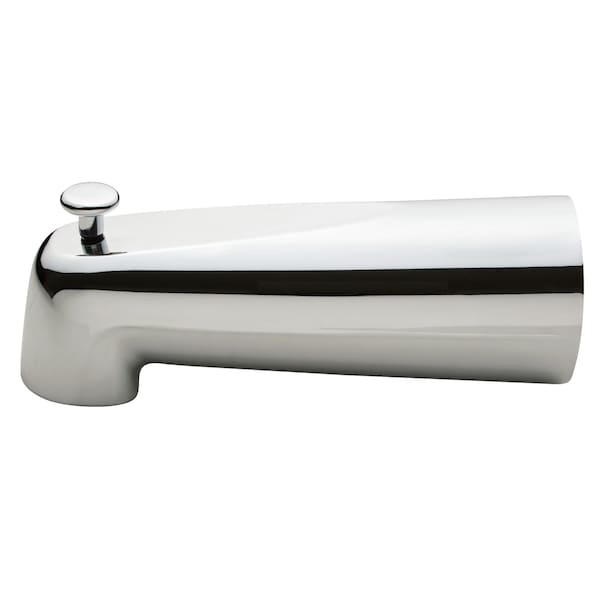 The sleek body and curved headpiece of this tub spout evokes a simplistic design, giving your bathroom a universal appeal. A featured diverter lever above the head enables water to switch its flow between the tub spout and the shower head. Choose from an array of finishes to coordinate with your bathroom ensemble.