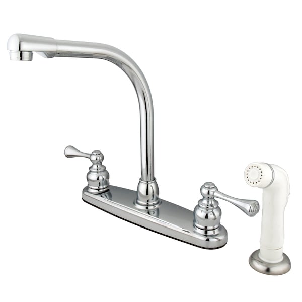 The exquisite design of this faucet tastefully flatters the elegant architecture of traditional homes with its fine detailing. Easily adaptable to any style, centerset faucets are admired for their single unit and ease of installation. The polished chrome finish will also add a glistening elegance to your kitchen. A sturdy brass construction and swivel abilities make for a reliant and long lasting fixture. Utilize the included side-sprayer for convenience in cleaning hard-to-reach areas.