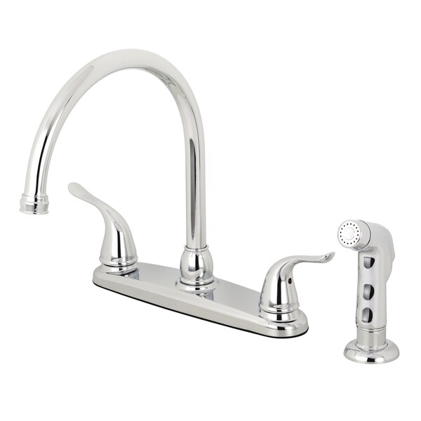 This faucet's modern features create a bold and edgy design in your kitchen. Easily adaptable to any style, centerset faucets are admired for their single unit and ease of installation. The polished chrome finish will also add a glistening elegance to your kitchen ensemble. A sturdy brass construction and swivel abilities make for a reliant and long lasting fixture. Utilize the included matching finish side-sprayer for convenience in cleaning hard-to-reach areas.