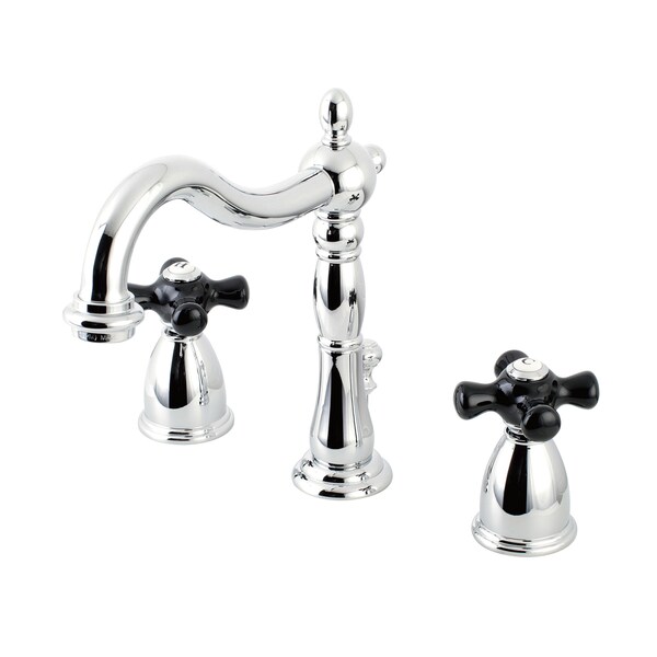 Crafted in commendations to English nobility, the exemplary design of this faucet manifests regality and elegance with its black porcelain handles. Ideal for more spacious bathrooms, widespread faucets are more spread apart and feature a 3-hole installation. The Duchess 8-Inch Widespread Bathroom Faucet with Retail Pop-Up and its sturdy brass construction and premium polished chrome finish are guaranteed to glamorize your home. A matching finish drain is also included.