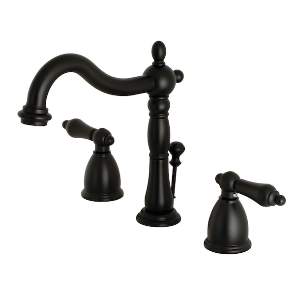 A lavish spark of traditionally stylized glamour is brought to your bathroom ensemble with this beautiful faucet. Ideal for more spacious bathrooms, widespread faucets are more spread apart and feature a 3-hole installation. The Heritage 8-Inch Widespread Bathroom Faucet with Brass Pop-Up and its sturdy brass construction and premium matte black finish are guaranteed to glamorize your home. A matching finish drain is also included.