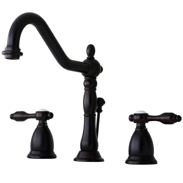 Offering a nod toward the past, this faucet is beautifully inspired by the vintage elegance of mid-19th Century design. Ideal for more spacious bathrooms, widespread faucets are more spread apart and feature a 3-hole installation. The Tudor 8" Widespread Bathroom Faucet with Brass Pop-Up and its sturdy brass construction and premium oil rubbed bronze finish are guaranteed to glamorize your home. A matching finish drain is also included.