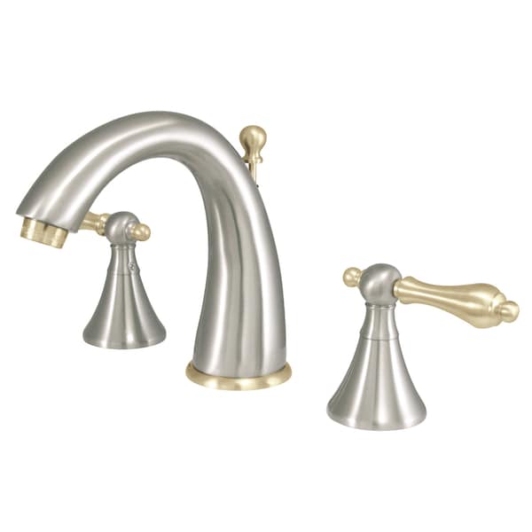 This faucet exemplifies sophisticated grace and beauty while offering top-of-the-line endurance and dependability. Ideal for more spacious bathrooms, widespread faucets are more spread apart and feature a 3-hole installation. The Naples 8" Widespread Bathroom Faucet with Brass Pop-Up and its sturdy brass construction and premium brushed nickel/polished brass finish are guaranteed to glamorize your home. A matching finish drain is also included.