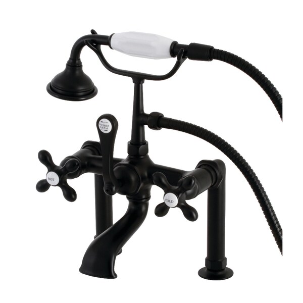 Vintage opulence finds itself within this deck-mount clawfoot tub faucet. As the perfect complement to your tub, this will complete your refined bathroom decorum with the help of its premium, glistening matte black finish and telephone style hand shower. The solid brass construction also makes for a heavy, quality made product.