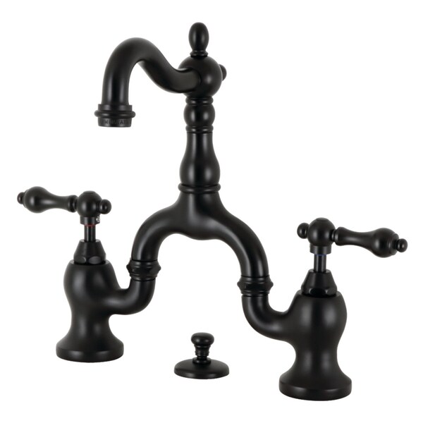Embody the extravagance of 18th century Europe by adorning your house with the traditional elegance offered by this faucet Elegantly designed, the exquisite arch connecting the spout to the handles provides an added aesthetic appeal to make for more of a statement piece Additionally, the 818 inch of spout clearance make for a very easy hand washing experience with plenty of room for other tasks The English Country Bathroom Faucet with Brass PopUp and its featured sturdy brass construction and premium matte black finish will glamorize your home's traditional ensemble for years to come A matching finish drain is also included