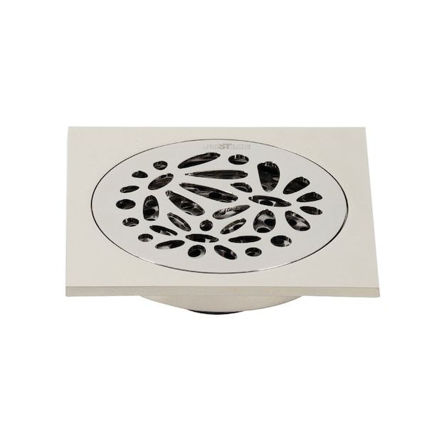 BSF6360PN Watercourse Floral 4" Square Grid Shower Drain, Polished Nkl