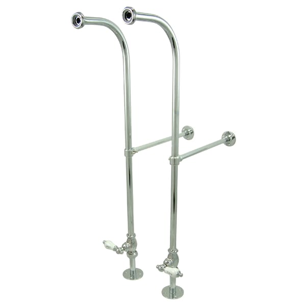 This freestanding water supplies with stop comes in pairs and includes adjustable height wall braces. They are constructed of high quality brass to ensure reliability and durability. Its premier finish resists tarnishing and corrosion. Part of the Vintage Collection