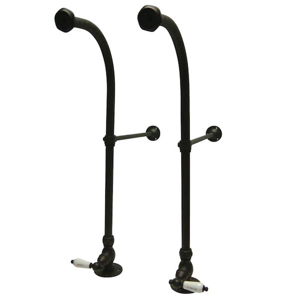 This freestanding water supplies with stop comes in pairs and includes adjustable height wall braces. They are constructed of high quality brass to ensure reliability and durability. Its premier finish resists tarnishing and corrosion. Part of the Vintage Collection