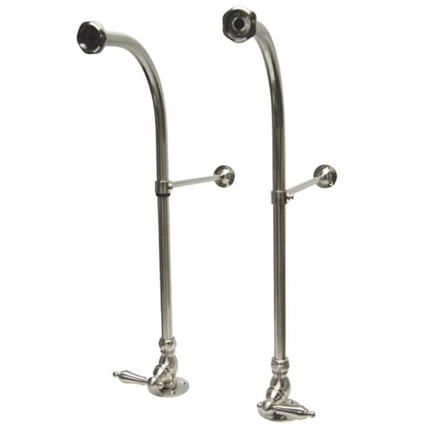 This freestanding water supplies with stop comes in pairs and includes adjustable height wall braces. They are constructed of high quality brass to ensure reliability and durability. Its premier finish resists tarnishing and corrosion. Part of the Vintage Collection