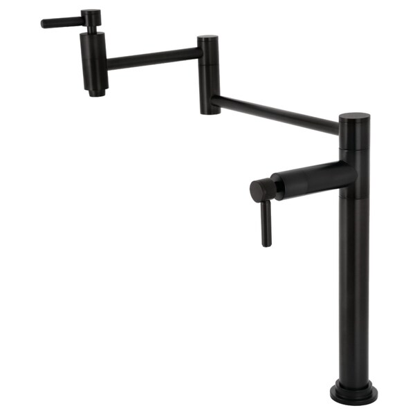 This faucet boasts bold, sleek design with its cylindrical styling As an excellent tool to quickly, easily, and stylishly fill the pots directly on or next to the stove, eliminate strain on your joints Deck mount pot fillers are useful gadgets placed directly on the countertop, providing easily accessible water The foldable swing arms of this pot filler allow for extendable reach of up to 191516 of length and provide longlasting function due to their sturdy brass construction Additionally, the dual handles prevent unwanted water spillage while enhancing the traditional theme