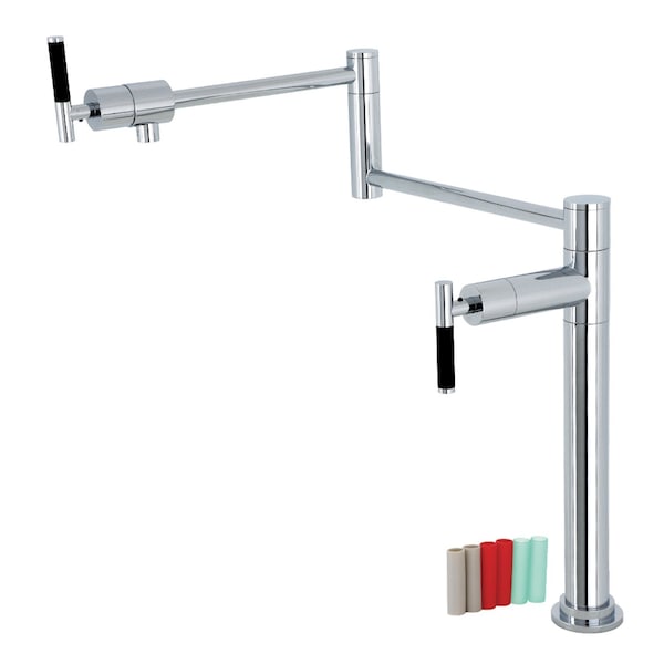 This faucet tastefully interweaves topnotch ergonomic design and the sheen of contemporary simplicity with its black silicone rubber coated handles and cylindrical facets As an excellent tool to quickly, easily, and stylishly fill the pots directly on or next to the stove, eliminate strain on your joints Deck mount pot fillers are useful gadgets placed directly on the countertop, providing easily accessible water The foldable swing arms of this pot filler allow for extendable reach of up to 191516 of length and provide longlasting function due to their sturdy brass construction Additionally, the dual handles prevent unwanted water spillage while enhancing the modern theme
