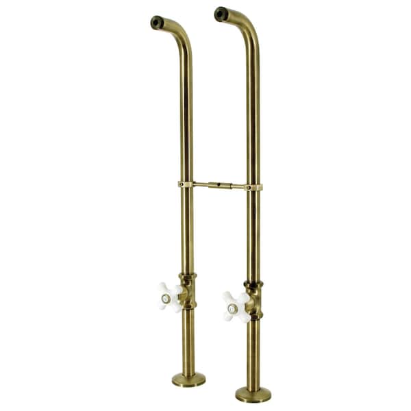 Unity in balance and support is what this freestanding supplies embodies with an included supply line, stop valve and handle from the Kingston Collection. Composed from solid brass material, this freestanding supply line features a floor-mount installation with 28 inch height. Excellence of endurance and reliability is emboldened by a corrosion-resistant finish, embellish your home ensemble with this freestanding water supplies. The water supplies comes in pairs. Available in a variety of finishes.