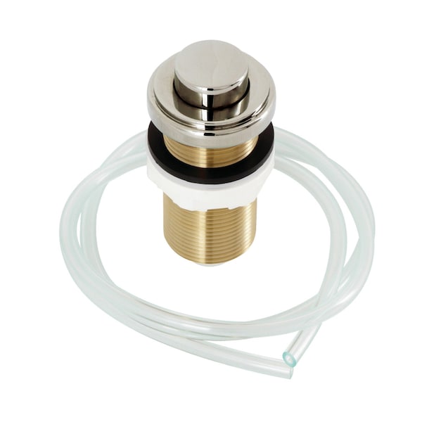 The disposal air switch button from Gourmetier is a convenient way in finishing work around the kitchen sink The button, which can be mounted to the sink or the countertop, connects to a hose which plunges air activating the disposal The brass button is available in a multitude of finishes Chrome, brass, bronze, nickel to complement the finish of your faucet andor surrounding decor