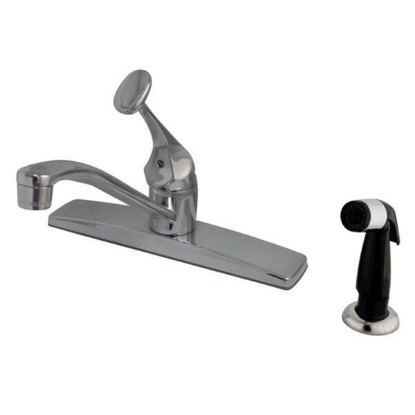 The exquisite design of this faucet tastefully flatters the elegant architecture of traditional homes with its fine detailing. Easily adaptable to any style, centerset faucets are admired for their single unit and ease of installation. The polished chrome finish will also add a glistening elegance to your kitchen ensemble. A sturdy brass construction and swivel abilities make for a reliant and long lasting fixture. Utilize the included matching finish side-sprayer for convenience in cleaning hard-to-reach areas.