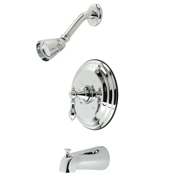 Add refinement and charm to your bathroom with this tub and shower faucet's simple design. Complete with an easy-to-turn lever handle, an optimum bathing experience awaits. Enjoy the sturdy brass construction and premium polished chrome finish for a fixture that will last for years to come. A pressure balanced valve is included for safety and protection against accidental burns.