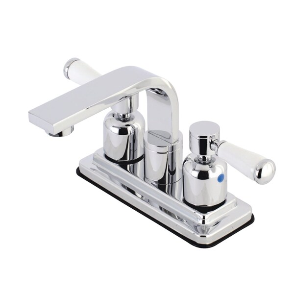 Crafted to bring aesthetic beauty alongside exceptional performance, the feature of porcelain lever handles and rounded architecture solidifies pristine refinement in this faucet. Centerset bathroom faucets are ideal for smaller bathrooms and feature an easy 2-hole installation. The Paris 4-inch centerset bathroom faucet with brass push pop-up and its featured sturdy brass construction and premium polished chrome finish are guaranteed to glamorize your home's modern ensemble for years to come. Embolden your home ensemble with the addition of this exquisite fixture. A matching finish drain is also included.