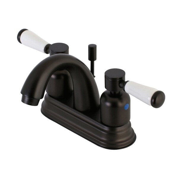 Crafted to bring aesthetic beauty alongside exceptional performance, the feature of porcelain lever handles and rounded architecture solidifies pristine refinement in this faucet. Centerset bathroom faucets are ideal for smaller bathrooms and feature an easy 3-hole installation. The Paris 4-inch centerset bathroom faucet with retail pop-up and its featured sturdy brass construction and premium oil rubbed bronze finish are guaranteed to glamorize your home's modern ensemble for years to come. Embolden your home ensemble with the addition of this exquisite fixture. A matching finish drain is also included.