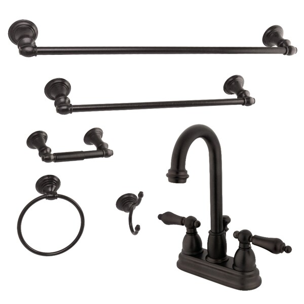 The exquisite design of this faucet tastefully flatters the elegant architecture of traditional homes with its fine detailing. Centerset bathroom faucets are ideal for smaller bathrooms and feature an easy 3-hole installation. The Kingston Brass 4-inch centerset bathroom faucet with 5-piece bathroom accessories and its featured sturdy brass construction and premium oil rubbed bronze finish are guaranteed to glamorize your home's traditional ensemble for years to come. A matching finish drain is also included.