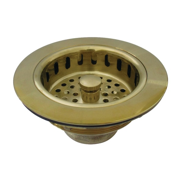 Fits sink with 3-1/2" drain opening, High quality brass construction, Includes brass lock nut and removable basket, Depth: 2-1/2", Easy to install, Easy to clean, just remove the basket to empty