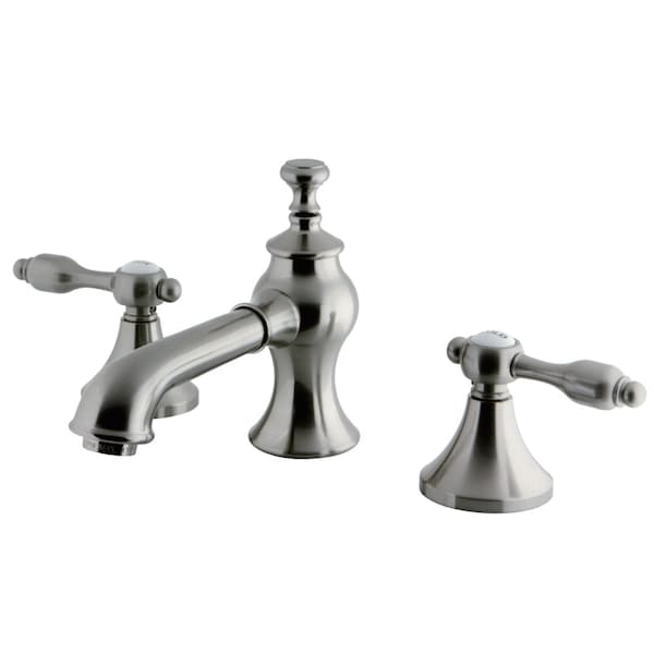 Offering a nod toward the past, this faucet is beautifully inspired by the vintage elegance of mid-19th Century design. Ideal for more spacious bathrooms, widespread faucets are more spread apart and feature a 3-hole installation. The Tudor 8-inch widespread bathroom faucet with brass pop-up and its featured sturdy brass construction and premium brushed nickel finish are guaranteed to glamorize your home's traditional ensemble for years to come. A unique and classically enchanting personality is embodied in this centerpiece. A matching finish drain is also included.