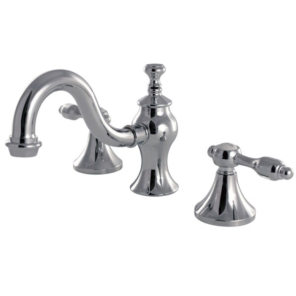 Offering a nod toward the past, this faucet is beautifully inspired by the vintage elegance of mid-19th Century design. Ideal for more spacious bathrooms, widespread faucets are more spread apart and feature a 3-hole installation. The Tudor 8-inch widespread bathroom faucet with brass pop-up and its featured sturdy brass construction and premium polished chrome finish are guaranteed to glamorize your home's traditional ensemble for years to come. A unique and classically enchanting personality is embodied in this centerpiece. A matching finish drain is also included.