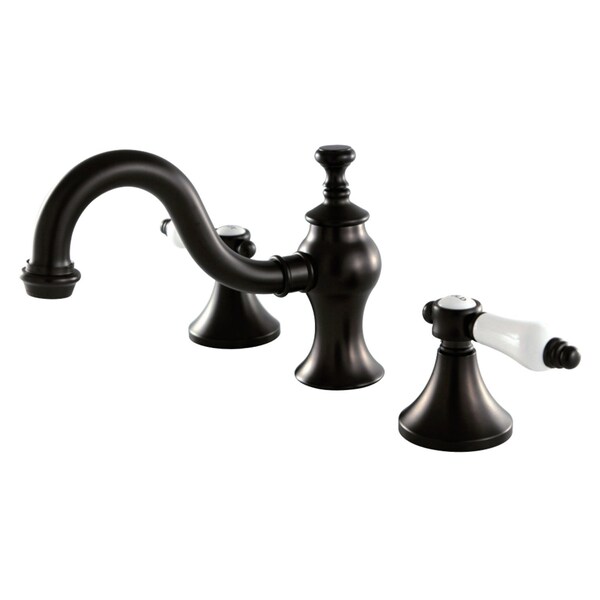 The graceful elegance of timeless design is beautifully merged between British flair and Victorian delicacy within this faucet's white porcelain levers. Ideal for more spacious bathrooms, widespread faucets are more spread apart and feature a 3-hole installation. The Bel-Air 8-inch widespread bathroom faucet with brass pop-up and its featured sturdy brass construction and premium oil rubbed bronze finish are guaranteed to glamorize your home's traditional ensemble for years to come. Varnish your bathroom with this state-of-the-art fixture. A matching finish drain is also included.