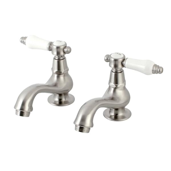 The graceful elegance of timeless design is beautifully merged between British flair and Victorian delicacy within this faucet's white porcelain levers. Basin tap faucets are a traditional design that allows users to mix water to their desired temperature within the sink basin. With lever handles for ease of use, the perfect temperature can be acquired with the separate cold and hot water taps. The Bel-Air Basin Tap Faucet With Cross Handle and its featured sturdy brass construction and premium brushed nickel finish are guaranteed to glamorize your home's traditional ensemble for years to come. Varnish your bathroom with this state-of-the-art fixture.